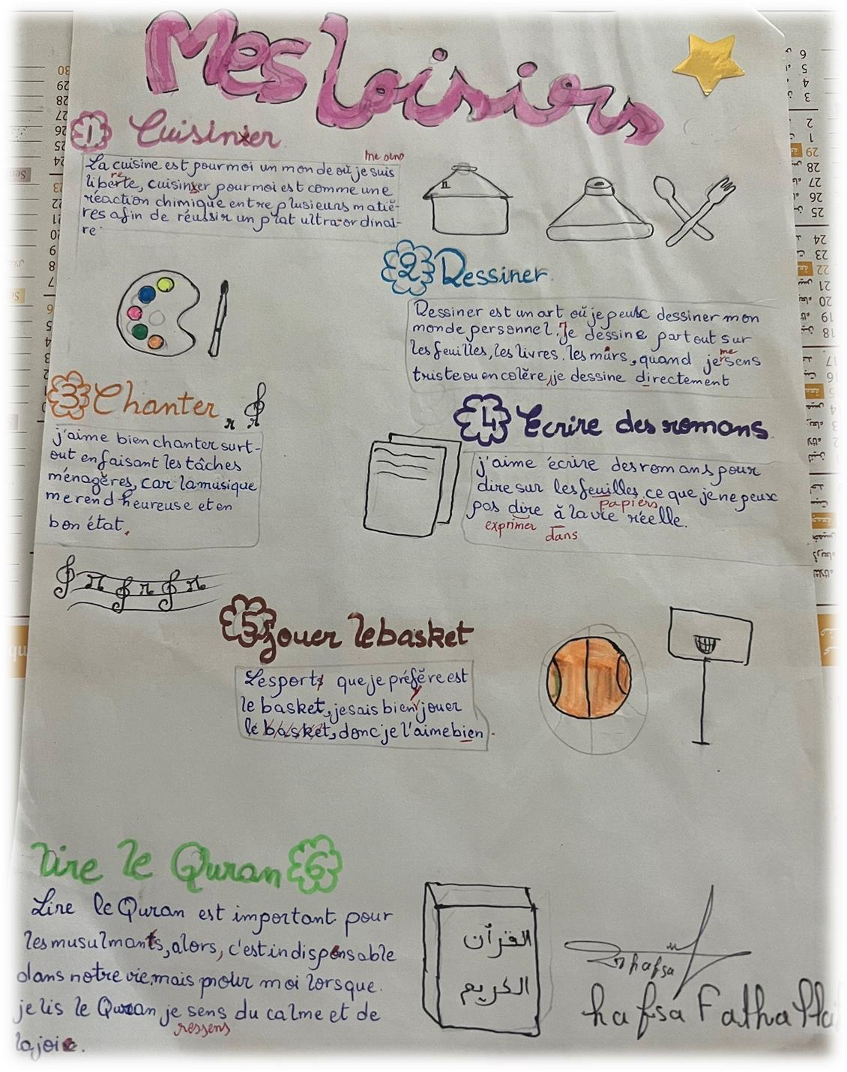En tant que professeure, j’ai encadré mes élèves de tronc commun sur le thème des loisirs et sélectionné dix productions remarquables de deux classes du « Lycée Qualifiant ABDELLAH AL AYACHI » de Casablanca, Maroc. Ces textes illustrent la diversité de leurs centres d’intérêt.