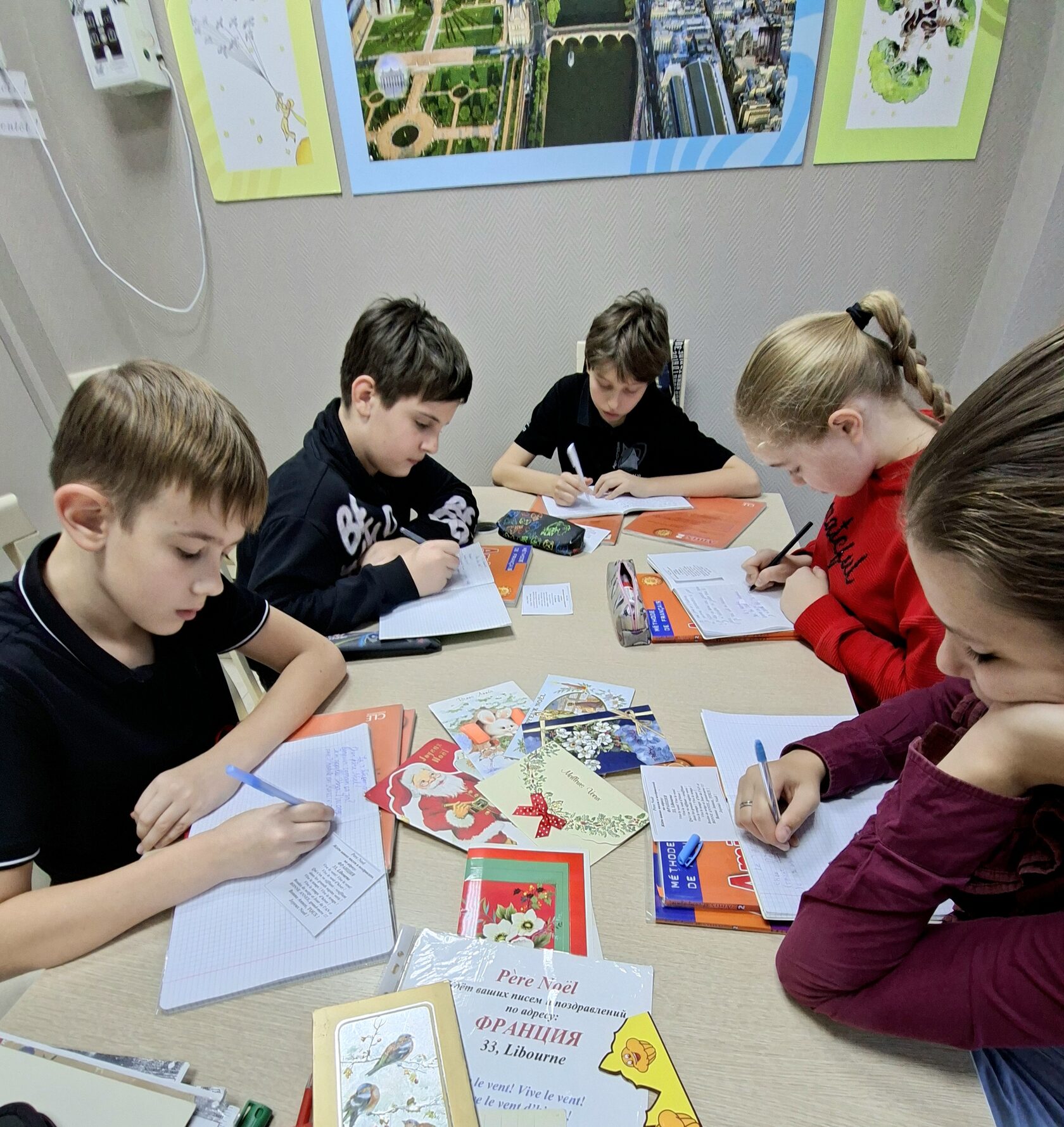 Et voilà que ces cartes magiques reçues dans des années 60-90 dans un pays appelé URSS, ces merveilleux dépliants parfumés se réveillent, renaissent sous les yeux des enfants qui ne savent même plus parfois ce que c’est que la poste, l’enveloppe et les timbres. Ils regardent une belle écriture d’une dame qui leur est inconnue, une Française, qui adorait tout ce qui était russe et son mari russe... Ils admirent des images en carton qui bougent. Ils s’imprègnent du style français. Ils lisent des formules très gentilles et chaleureuses, de jolies phrases du français authentique.