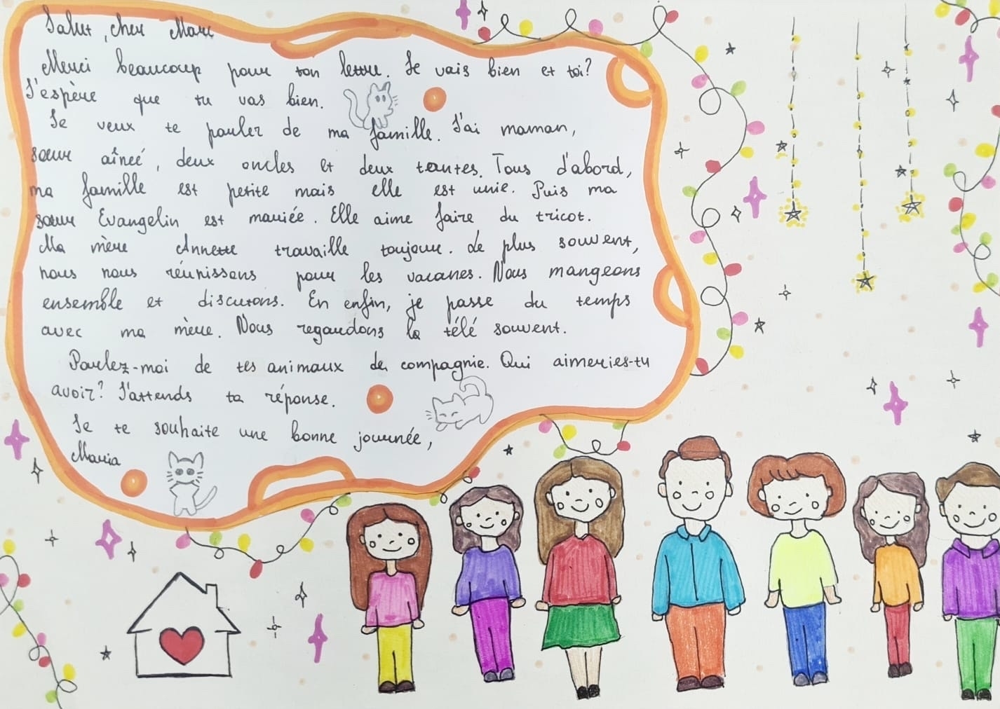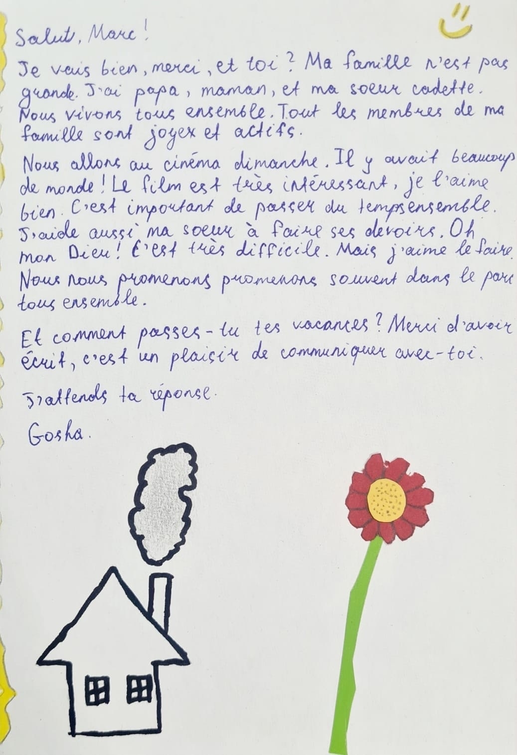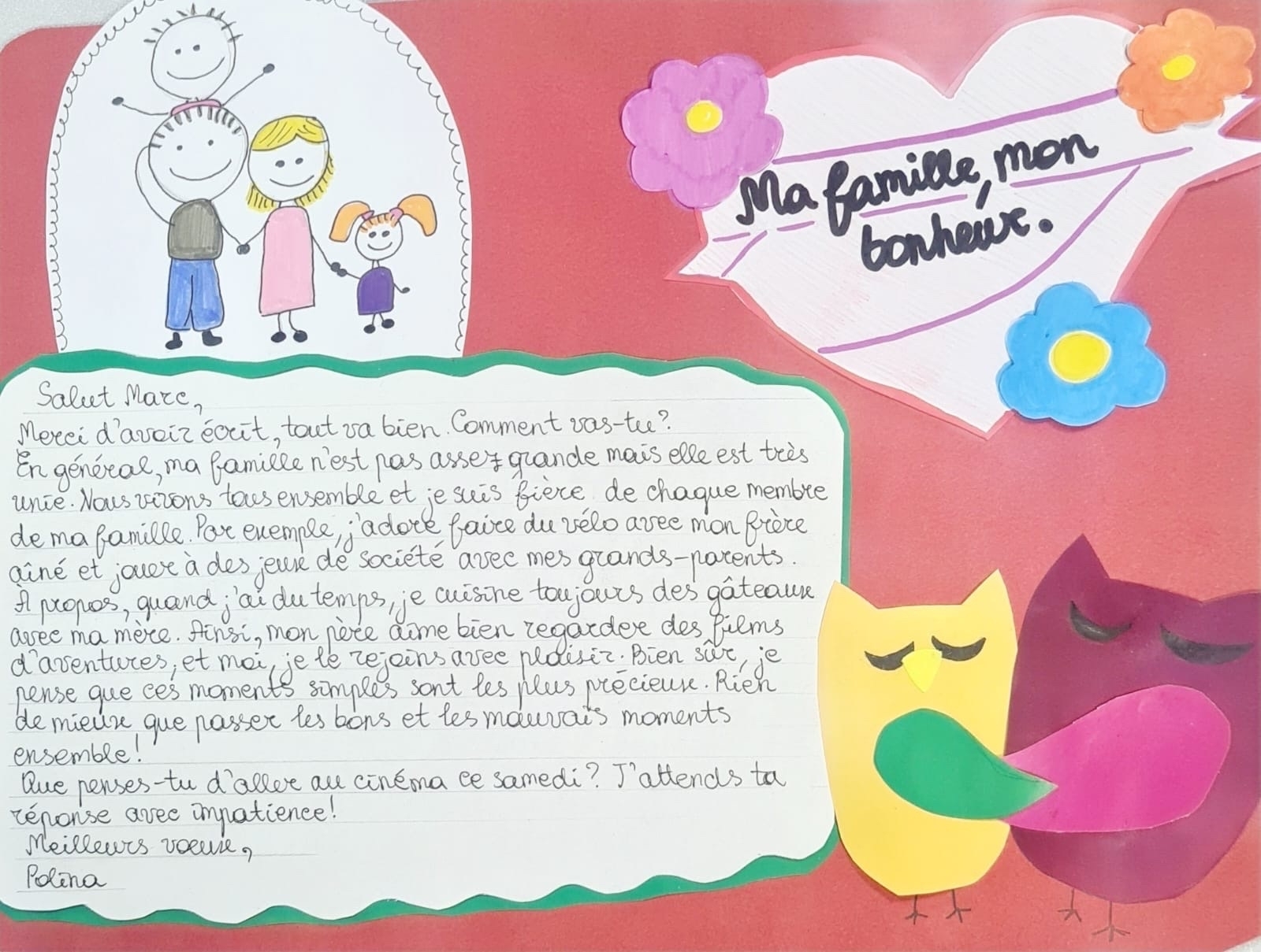 Les étudiants débutant en français ont participé à une autre activité créative : ils ont créé une carte postale comme une réponse à une lettre d’un ami ou de la grand-mère.