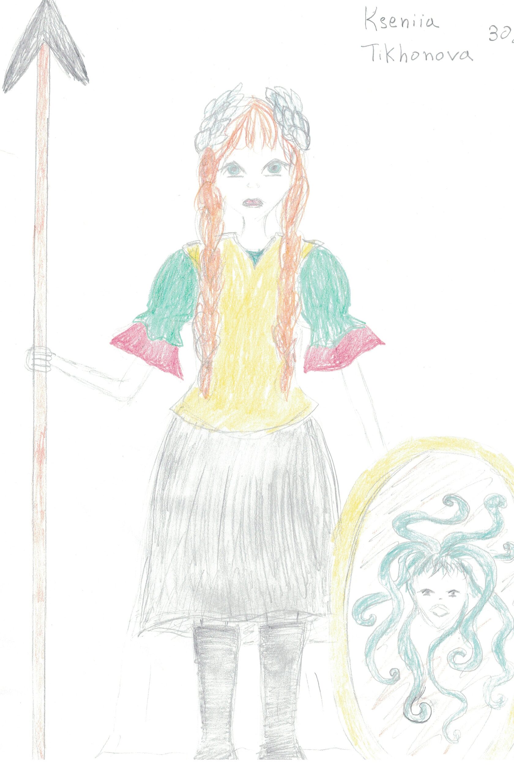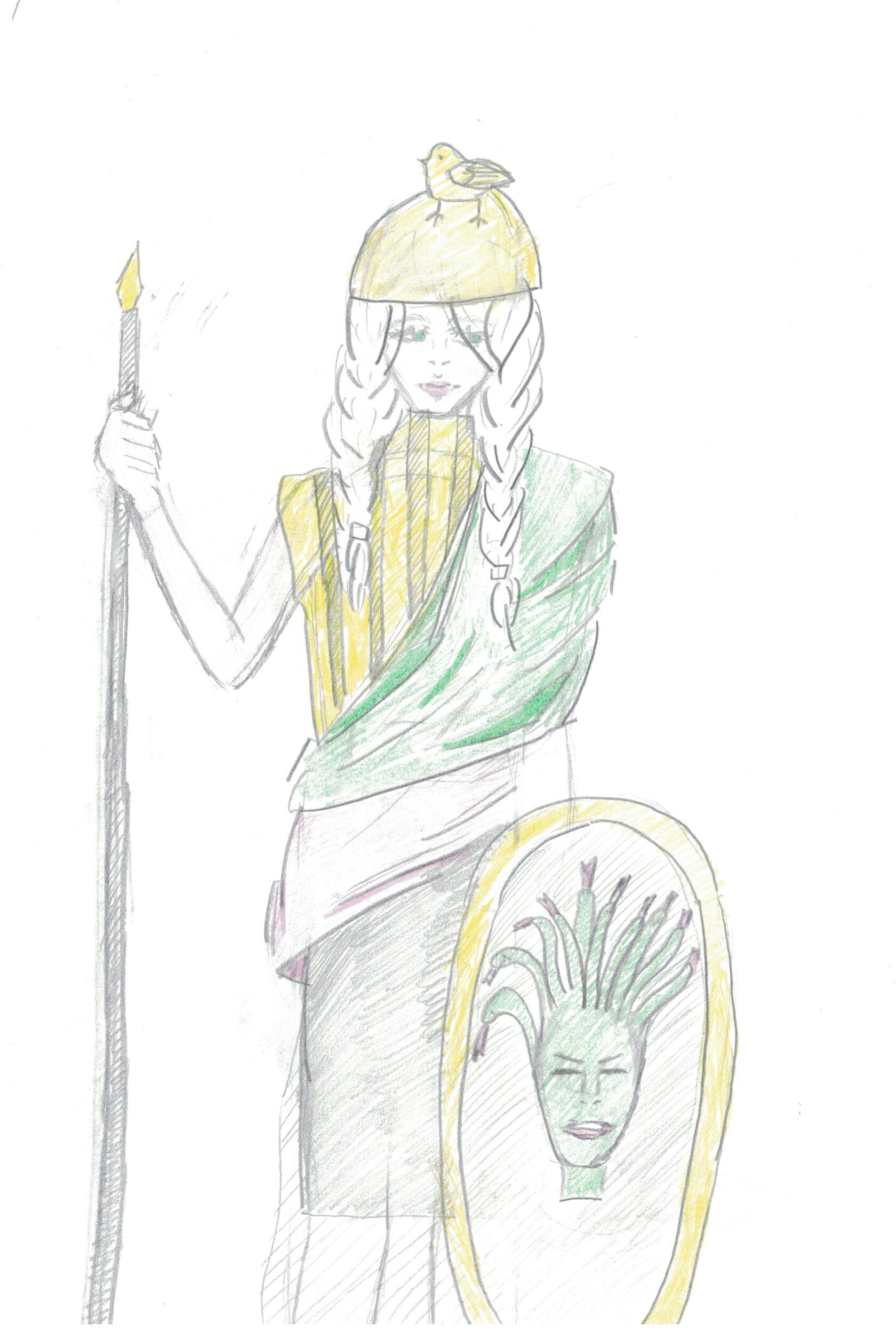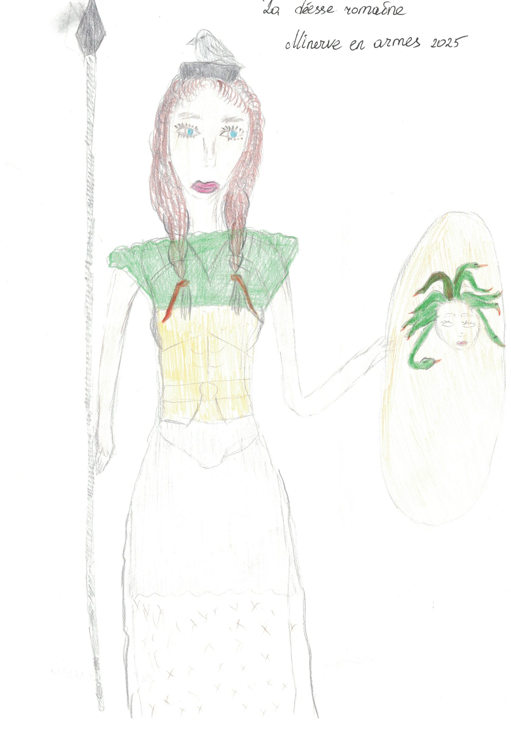 La créativité résidait dans la seconde partie : la dictée artistique, quand les mots inspirent les traits. Ici, il ne s’agissait plus d’écrire, mais d’écouter un texte décrivant un tableau et de le traduire en dessin en temps réel. C’était une présentation de l’œuvre de Baccio della Porta « La déesse romaine Minerve en armes » (1490). Cet exercice a mobilisé une écoute active différente, où la compréhension fine du vocabulaire et des tournures servait à nourrir l’imagination visuelle. La salle de classe s’est transformée un peu en atelier d’artiste le temps de la lecture, chacun interprétant à sa manière les mots entendus.